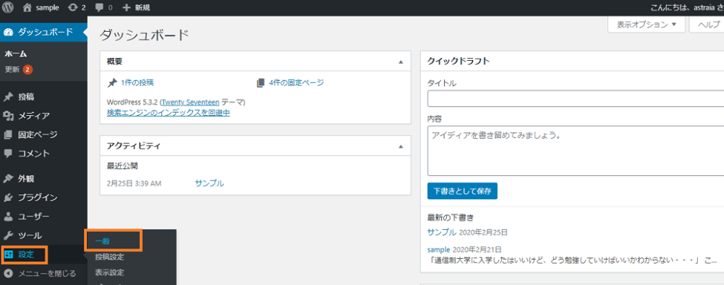 また、タイトル・キャッチフレーズは設定⇒一般からも変更できます。