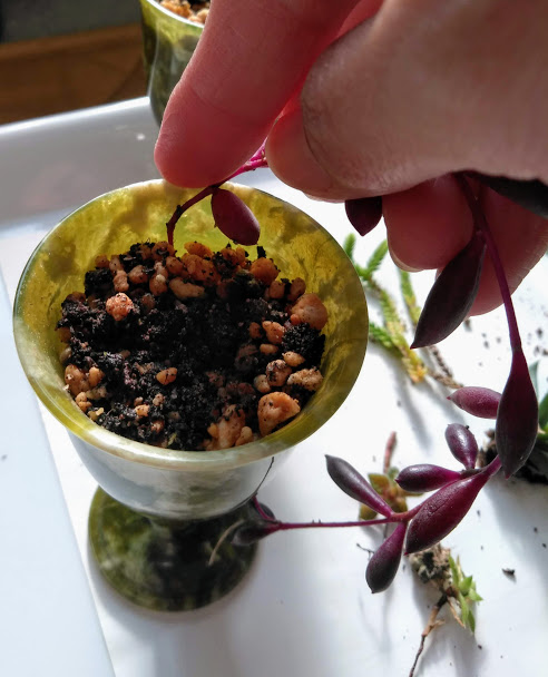 とても小さい植物ですので普通のスコップでは、土を鉢に入れることが難しいです。いらなくなったスプーンなどが、ちょうど使いやすいと思います。