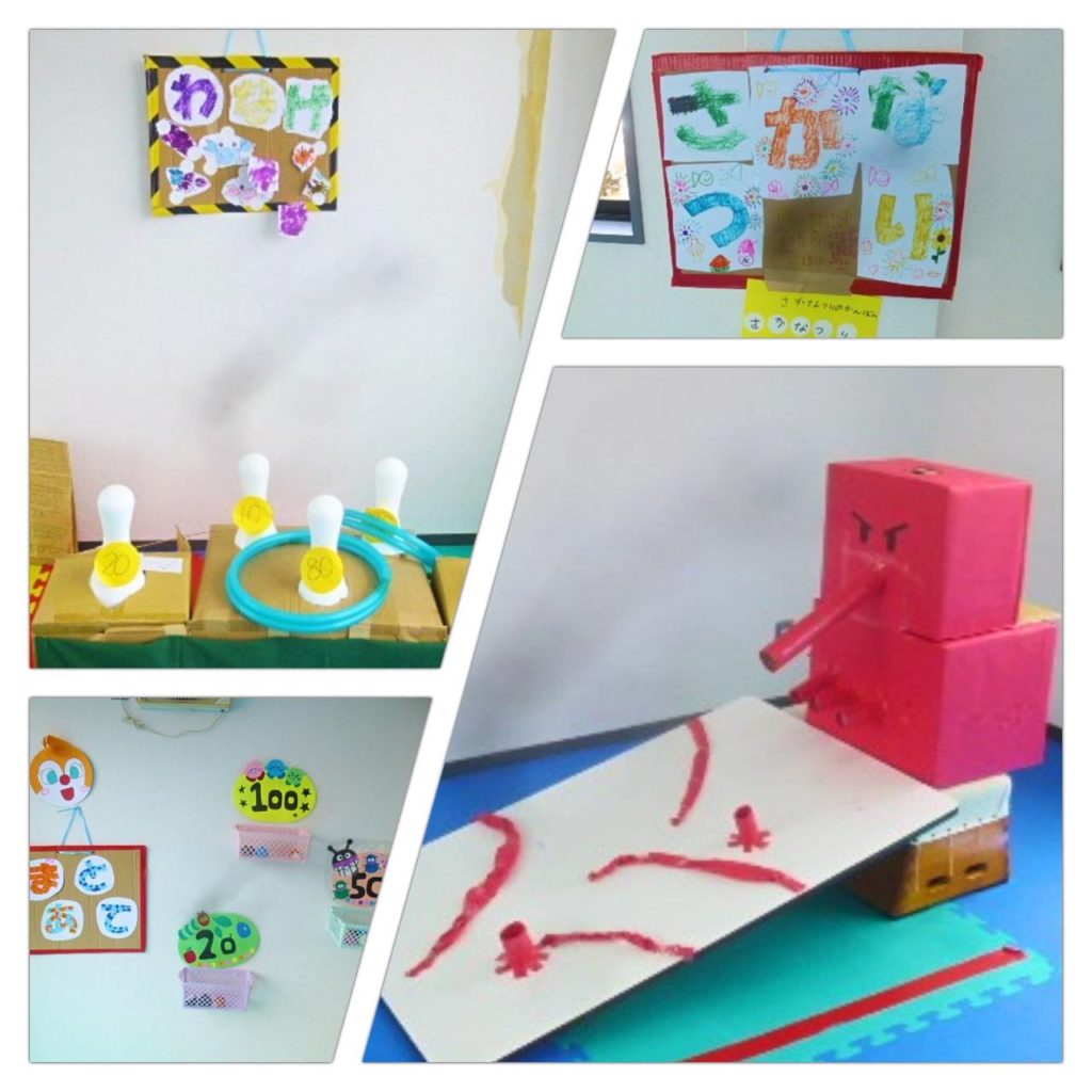 わなげも玉入れも点数が書いてあり、点数ごとに競います。小さい子供たちは、入れることを楽しみ、高学年以上になると計算することも楽しみました。そして、力加減をすることが難しい子供たちが、力加減をすることで、高得点がとれる喜びを感じます。