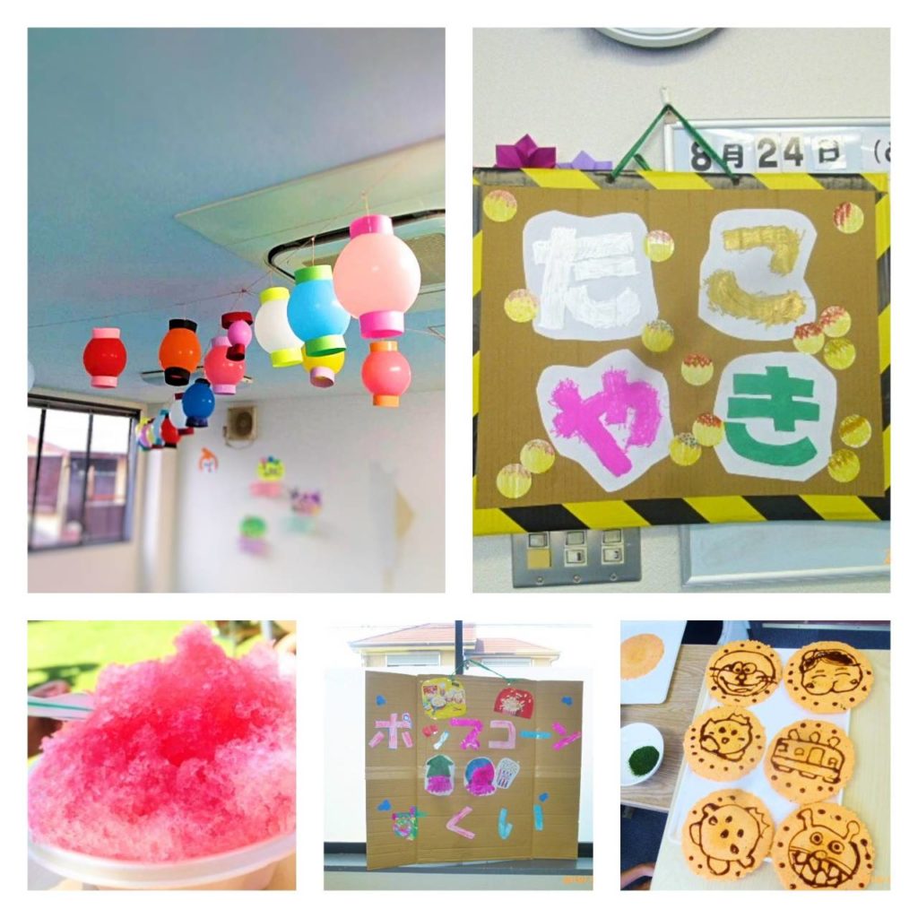 夏祭りらしく、食べ物コーナーは、たこ焼き、かき氷、たこせん、ポップコーンを用意しました。