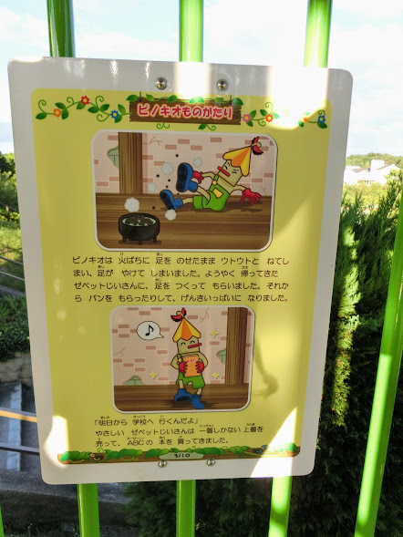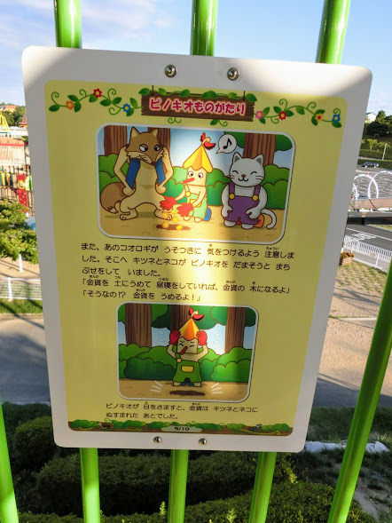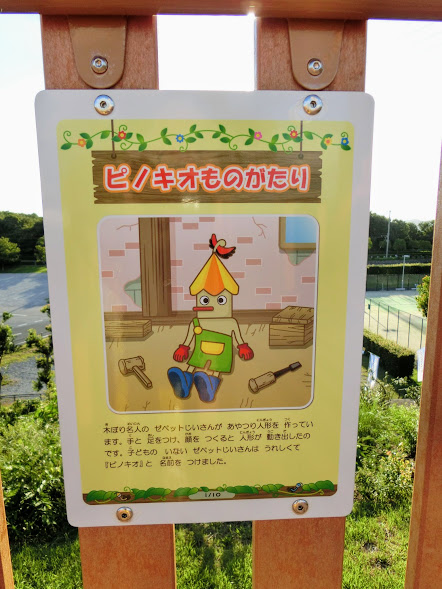 大型複合遊具とローラーすべり台は童話ピノキオをテーマに作られているだけあり、遊具の中にお話のプレートが散りばめられています。全部で10枚。ぜひ探してみてくださいね。