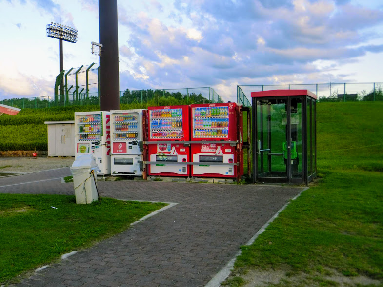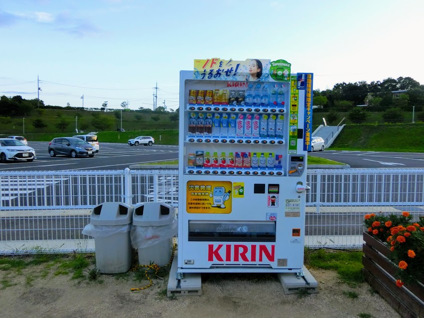 遊んでいる途中で疲れたり、水分補給をしたくなったら公園内の自動販売機を利用しましょう。大型複合遊具エリアに1台、野球場トイレ横に4台あります。夏場は熱中症などにも気を付けたいですね。
