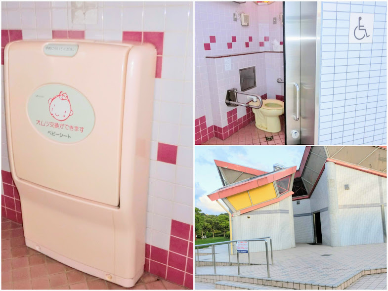 野球場のトイレは全て和式ですが、オムツ替えの台と身障者用トイレがあります。